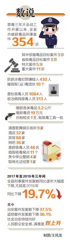 通过两年多的综合治理,定安社会秩序大幅好转,群众安全感和满意度大幅上升。省禁毒委经过实地考核,于2019年4月28日摘掉了定安“通报警示县”的帽子。