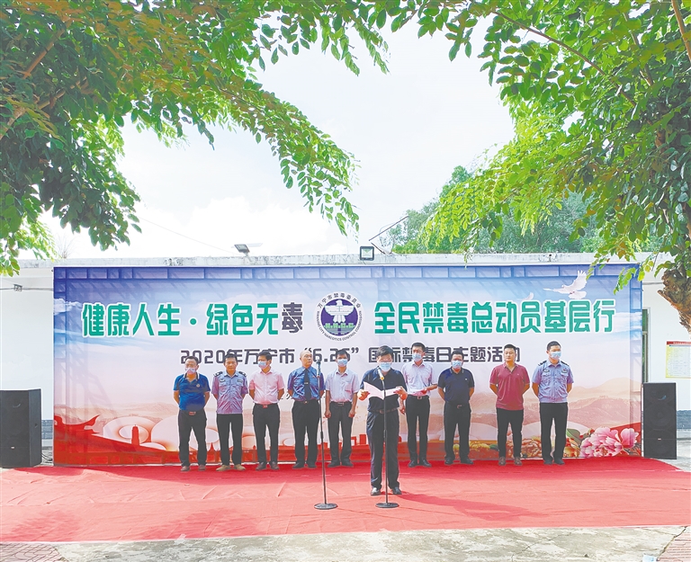 6月24日下午,由万宁市禁毒委员会主办的2020年“6·26”国际禁毒日主题活动启动仪式在万城镇群庄村群庄小学举行,万宁市委副书记、政法委书记、市禁毒委副主任杨应龙出席。活动现场,来自该市各级机关单位、企业、学校的3000余名志愿者们参与,以实际行动宣传全民禁毒理念。