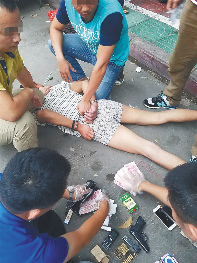 2016年11月21日晚,万宁市公安局和乐派出所组织民警对毒贩李某军进行追捕,李某军驾驶车辆疯狂逃窜,民警韦海飞和卢家飞紧抓着嫌疑车辆副驾驶车门,不慎被拖行几百米远。两人全然不顾身上多处淤伤,与毒贩进行激烈搏斗,在多名干警的协作下,最终将李某军缉拿归案。