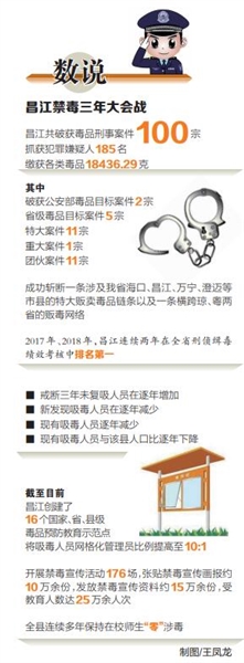 2017年、2018年,昌江连续两年在全省刑侦缉毒绩效考核中排名第一。