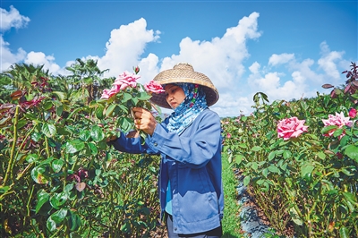 田间,玫瑰向阳生长。杨莹介绍,这曾是一块几乎无法种植的盐碱地,企业进驻后,通过技术改良、品种筛选、反复试验,为这片贫瘠土地带来新生机。企业带领着村民共同发展玫瑰种植和旅游产业,走出了一条脱贫致富新路子。