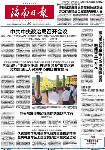 海南日报 头版 001 2020-06-301 2020年06月30日 星期二