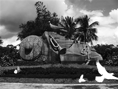 长大后,我随父母住进黎族老百姓聚居的村落,多次在小球场观看电影《红色娘子军》。剧中的旁白和音乐常常萦绕在我的耳畔,贯穿了我的成长过程。那棵据说是影片《红色娘子军》中洪常青牺牲时所在的大榕树,是我参加工作后常常驾车路过的地方。无论是尘土飞扬的烈日下,还是大雨滂沱的台风天,我都不忘瞅上一眼,似乎还能看到洪常青牺牲前的身影。当我翻越盘山公路经过分界岭时,红色娘子军们仿佛陪伴在我的身旁,她们在椰子树下、槟榔林边小憩,黎村苗寨的袅袅炊烟中还流传着她们的故事。