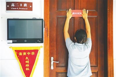 高考即将拉开帷幕,今年海南省高考将于7月7日至10日进行,全省有57336名考生参加考试,共设19个考区、38个考点,安排1955个考场,135个隔离考场,49个备用考场。本报记者 张茂 摄