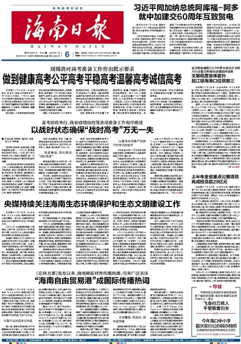 海南日报 头版 001 2020-07-061 2020年07月06日 星期一