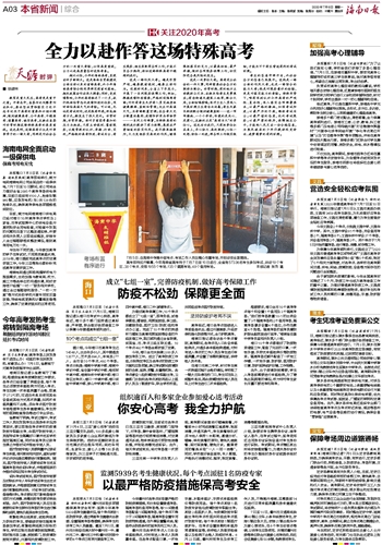 海南日报 本省新闻综合 003 2020-07-061 2020年07月06日 星期一