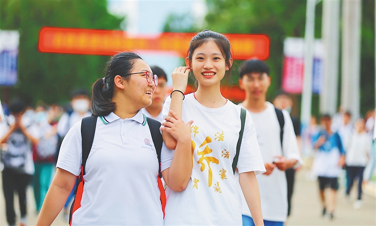 ②7月8日,在海南华侨中学高中部考点,考生在考完英语科目后走出考场。 本报记者 张茂 摄