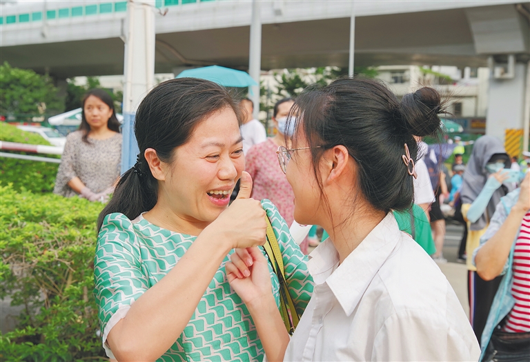 ④7月8日,海南华侨中学高中部考点外,家长给考生加油鼓劲。实习生 孙士杰 摄