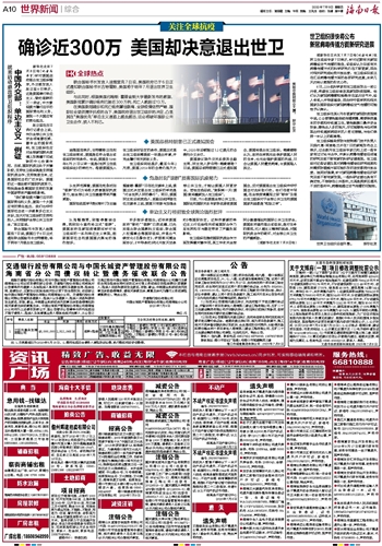 海南日报 世界新闻综合 010 2020-07-091 2020年07月09日 星期四