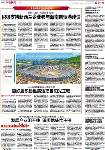 积极支持新西兰企业参与海南自贸港建设