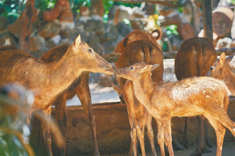| 梅花鹿妈妈对梅花鹿宝宝的舐犊情深。 梅花鹿是一种中小型鹿,雄性角长达30至66厘米。梅花鹿群居性不强,雄鹿往往是独自生活。梅花鹿种群主要分布在俄罗斯东部、日本和中国。梅花鹿是中国国家一级保护动物,列入世界自然保护联盟濒危物种红色名录,等级为低危。 在工作人员细心照料下,海野梅花鹿家族今年先后迎来了十只梅花鹿宝宝,鹿宝宝的扎推出生让带仔的母鹿们形成了团结无比的守护者联盟,它们互相帮忙照看孩子,确保孩子们安全、快乐成长。 |