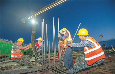 挑灯夜战施工忙