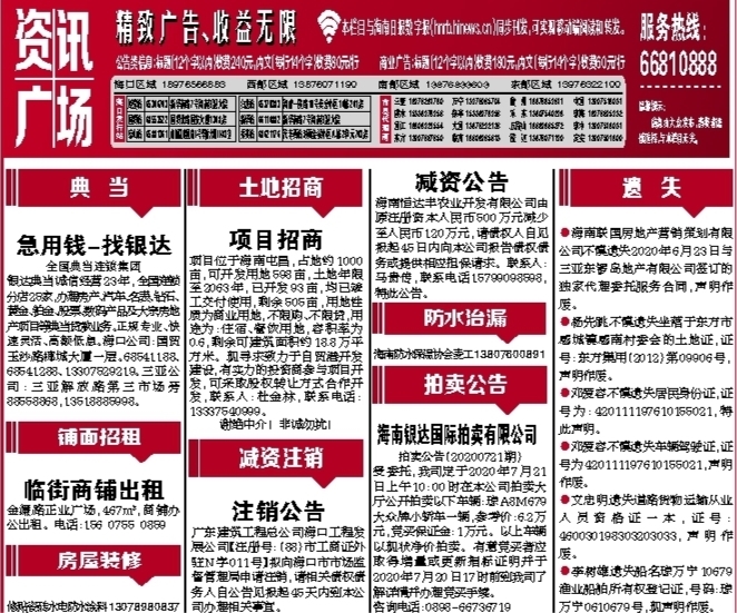银达典当诚信经营23年,全国连锁分店25家,办理房产、汽车、名表、钻石、黄金、铂金、股票、数码产品及大宗房地产项目等典当贷款业务。正规专业、快速灵活、高额低息。海口公司:国贸玉沙路椰城大厦一层。68541188、68541288、13307529219。三亚公司:三亚解放路第三市场旁 88558868,13518885998。