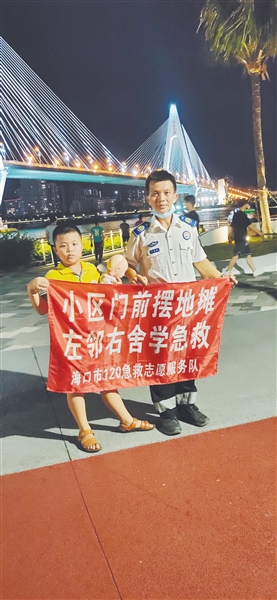 老严加入海口市120急救志愿服务队后,朋友们出去聚会时都喜欢叫上他。大家打趣道:“有老严在,心里踏实。”