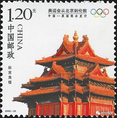 2008年北京奥运会期间,国家邮政局与英国联合发行了《奥运会从北京到伦敦》纪念邮票,全套4枚,面值1.20元,选取了奥运会主办地北京和伦敦标志性建筑为主图,融合古今中外,极富历史感和现代感,其中包括“故宫角楼”邮票一枚。