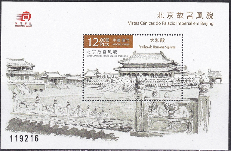 这套邮票共4枚,以故宫主要建筑为主组成四幅相对独立画面,连在一起就是一个完美整体,呈现了紫禁城全貌。其中第一枚名为“丹阙凌云”,由午门、金水河和太和门组成;第二枚为“太和晴旭”,描绘的是太和殿、中和殿及保和殿,三大殿分立于工字型汉白玉台基中央,白石栏杆衬托着朱柱红墙,不仅宏伟壮观的建筑艺术达到高潮,皇权象征也到达了巅峰;第三枚为“乾坤交泰”,乾清宫、交泰殿及坤宁宫,这是后宫的中心,其中坤宁宫是明清两代皇后的中宫。在内廷三宫东西两侧分列着12个院落,这就是著名的东西六宫,其中东六宫为钟粹宫、承乾宫、景仁宫、永和宫、延禧宫,西六宫为储秀宫、体和宫、翊坤宫、咸福宫、长春宫,这是后宫嫔妃们居住的宫室;第四枚是“琼苑春晖”,主要是御花园全景及故宫后门神武门。历代帝王无不重视游乐赏玩之事,皇宫内部都有皇家园林,故宫中就有四处较大的园林,分别是御花园、慈宁宫花园、福建宫花园和宁寿宫花园,大都布置了假山水池,花木扶疏,别具一格。