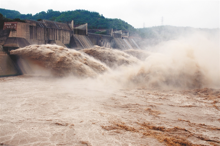 自7月1日黄河正式进入汛期以来,黄河小浪底水库持续泄洪,降低水库水位,为汛期腾出更多的防汛库容,迎接黄河防汛关键期的到来。 新华社发(苗秋闹 摄)