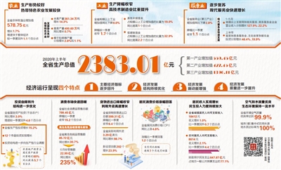 根据地区生产总值(GDP)统一核算结果,上半年全省GDP2383.01亿元,按可比价计算,同比下降2.6%,降幅较一季度收窄1.9个百分点。全省经济形势自2月份触底后逐月改善……7月21日,我省召开新闻发布会,通报2020年上半年我省主要经济指标并介绍全省经济运行总体情况。
