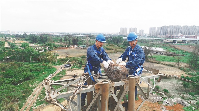 海南岛是鸟类的天堂,许多鸟类在产卵繁殖期会在电网的铁塔、输电线路上搭建鸟巢,给线路维护带来极大挑战。为解决这一问题,海南电网主动探索新型设备,研制与安装人工鸟巢,保障输电线路安全的同时也保护了生物多样性,助力实现海南不同生物物种与人类社会和谐共处。