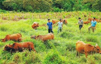 7月21日下午,在澄迈县加乐镇加朗村加大岭,王宗川把牛群安顿到一处水草丰美地后,便坐到树荫下算起账:“我跟老伴每个月能挣3000元,儿女们也都就业,有稳定收入,贫困户的帽子是彻底脱了。”