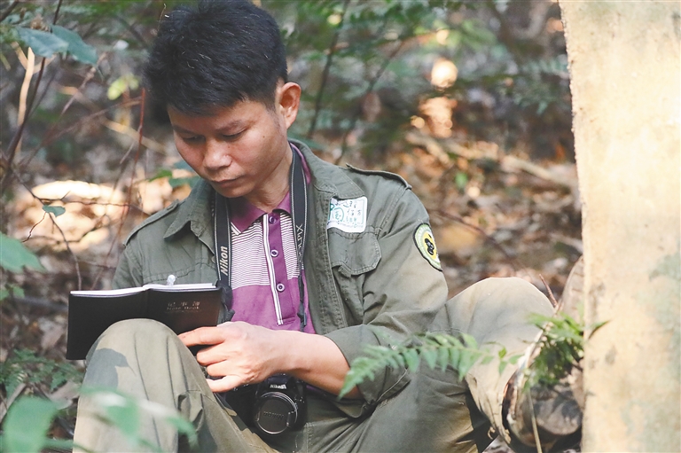 “每月至少要巡山22天,以前每次巡山都只能在小册子上做记录,后来又发放了望远镜、相机,香港嘉道理和保护区的科研人员还派人对我们进行培训,教我们怎么观察猿群、拍照记录。”