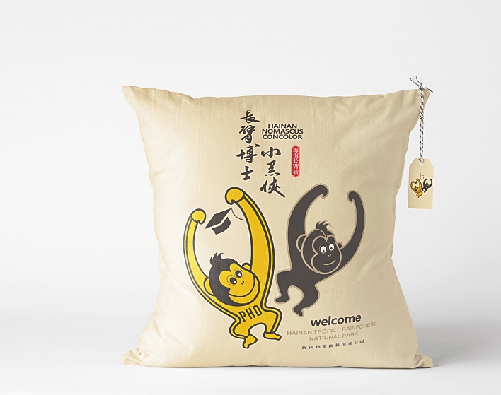 “我想拉近这一极度濒危物种与普通人的距离,让它们引起更多人的关注。”受海南热带雨林国家公园的委托,谢献文以海南长臂猿为原型,创作出一对憨态可掬的动漫IP形象——“长臂博士”和“小黑侠”,并由此衍生出人形玩偶、抱枕、手机壳、水杯等一系列文创产品。