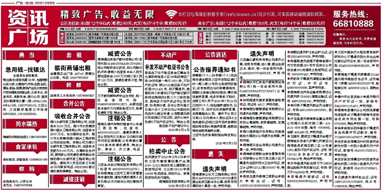 ●海南海日实业有限公司遗失公章一枚,声明作废。
