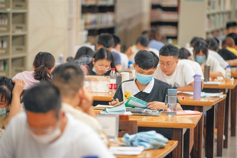 近日,在海南省图书馆,市民安静有序看书。本报记者 袁琛 摄