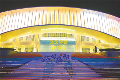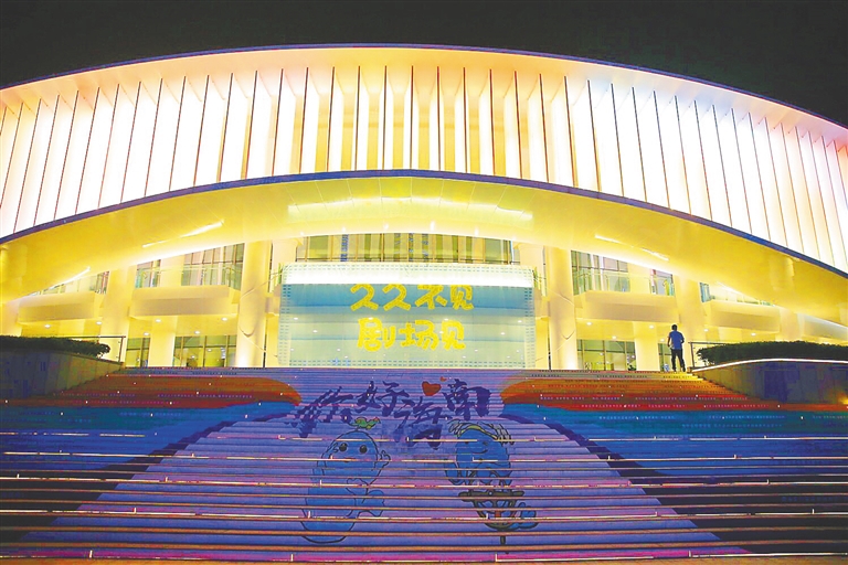 8月6日晚,海口市海口湾演艺中心亮灯。