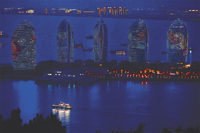 | 游轮夜游三亚湾。本报记者 封烁 摄 |