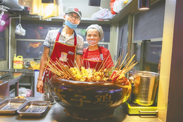 | 海口琼台福地美食街的小吃摊档。 本报记者 袁琛 摄 |