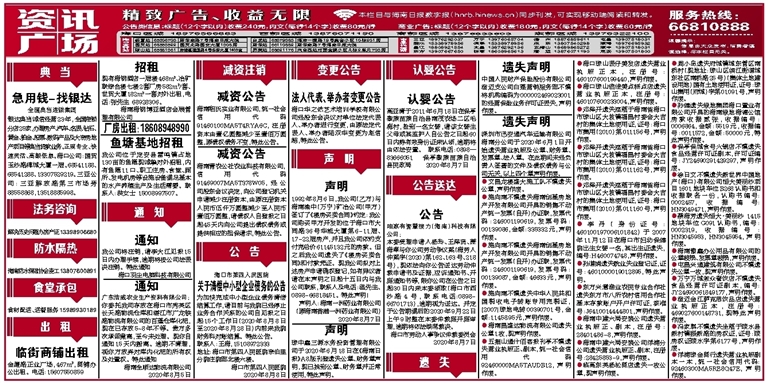 深圳市迅安通汽车运输有限公司海南分公司于2020年6月1日开始遗失营业执照及公章、财务章、发票章、法人章。在此期间未经负责人签署的文件及债权债务与公司无关,以上四个章声明作废。