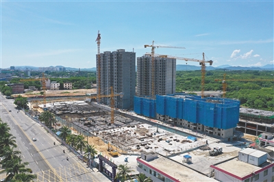 儋州加快滨海新区商业、教育和医疗等配套重点项目建设,为洋浦大开发带来的国际高端人才提供宜居的城市环境。8月8日,记者在儋州欧亚城综合体项目工地看到,项目的商业购物中心地下室主体结构已完工,地上主体建筑已建到地面3层,酒店等配套设施正在加紧施工。项目总投资20.3亿元,截至今年7月,累计完成投资1.65亿元。“项目(一期)全部建筑,预计2020年10月封顶。”儋州欧亚城综合体项目有关负责人王效峰说,项目将为洋浦投资者、居民和滨海新区的市民、游客,提供优良的购物休闲、娱乐健身、儿童早教、会展会演、医疗保健等消费环境。