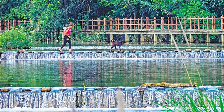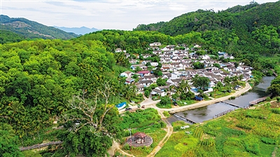 青石板路缓缓悠悠伸向村庄深处,耳畔的轰鸣声一阵紧似一阵,刚想寻踪觅源,一条清冽激湍的溪水便自眼前横贯而过。从石缝里挤出来,从树林中钻出来,淌淌流水冲过一级又一级拦水坝,如一层层小瀑布,叮叮咚咚击打着河床,把一块块硕大的鹅卵石冲刷得光亮而圆润。
