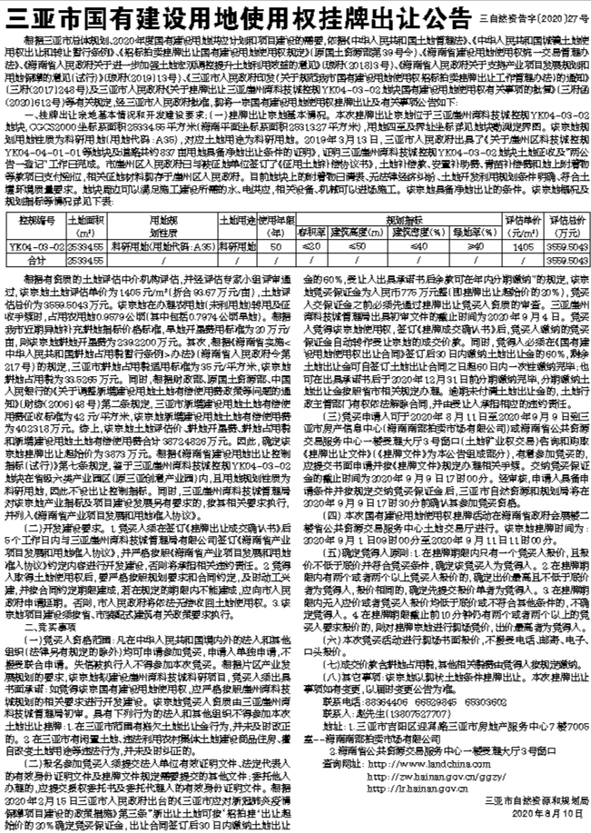 乐东黎族自治县国有建设用地使用权公开挂牌出让公告