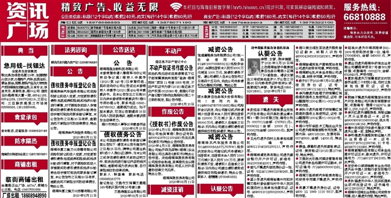 ●杨子仪(于2020年7月9日)遗失居民身份证,证号:460102199112142121,特此声明。