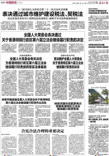 全国人大常委会有关决定为香港特别行政区第六届立法会继续履行职责提供坚实法律基础