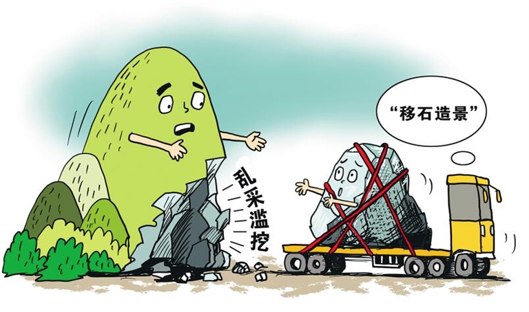 “移石造景”让人诟病的一个原因是破坏生态环境。很多景观石都是靠河道取石、山体开挖获得的。这样的做法,对河道的生态、山体的坏境或多或少都会造成破坏。同时,景观石价格昂贵,且定价标准不像其他商品那样透明,很容易滋生腐败。城市绿化和生态景观建设要遵循“尊重自然、因地制宜、减少人为干预、节约资源”等原则,而“移石造景” 违背自然规律,也打造不出具有地理个性、自然属性、区域特性的景观,只能造出千篇一律的“石景”,不要也罢!(图/朱慧卿 文/魏燕)