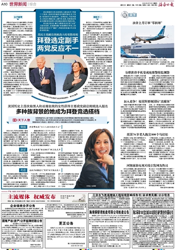 美国历史上首次有黑人和亚裔血统的女性获得主要政党副总统候选人提名~~~