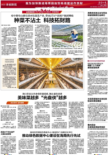 “菜品好吃合口味,不仅能够制止浪费,也能增加我们的回头客。”海南绿色丰谷餐饮管理有限公司相关负责人曾婷介绍,该公司运营的中央厨房不仅可为2万多名中小学生提供同时段营养餐,也可以为海口大型活动提供餐饮保障。