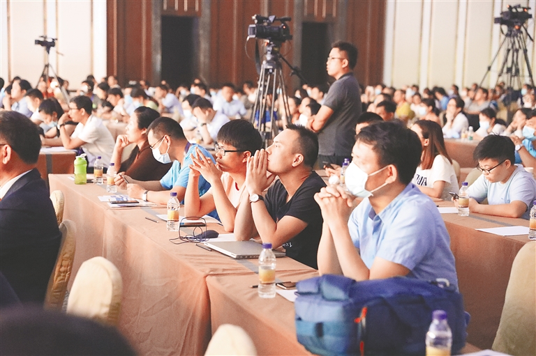 会上,海南省卫健委主任周长强、海南省教育厅副厅长黎岳南、海南医学院第一附属医院院长李丽、扬子江药业集团销售三局局长李德斌分别致辞。