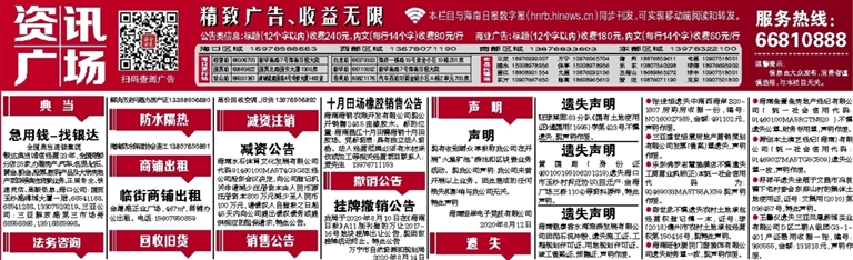 ●海南叁壹叁房地产经纪有限公司( 统一社会信用代码:91460100MA5RCTN520 )不慎遗失公章、财务专用章,声明作废。
