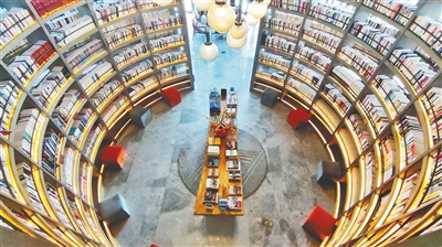 8月13日午后,三亚市育新路与师部农场路交会处,这里远离市区的喧闹,在路旁一栋安静的高楼里,有一家名为“爱上读书馆”的书屋。走进里面,首先被6米高的圆筒形书架震撼到了,上边密密麻麻地摆满了书籍。书架周围,摆放着许多现代简约风格的桌椅,不少读者正在那里陶醉于书的世界。