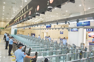 当日,珠海出入境边防检查总站与澳门特区政府治安警察局在横琴口岸新旅检区域联合开展全真实环境下的勤务组织和模拟通关实战演练,全力保障8月18日横琴口岸新旅检区域顺利开通、顺畅运行。 新华社记者 张金加 摄
