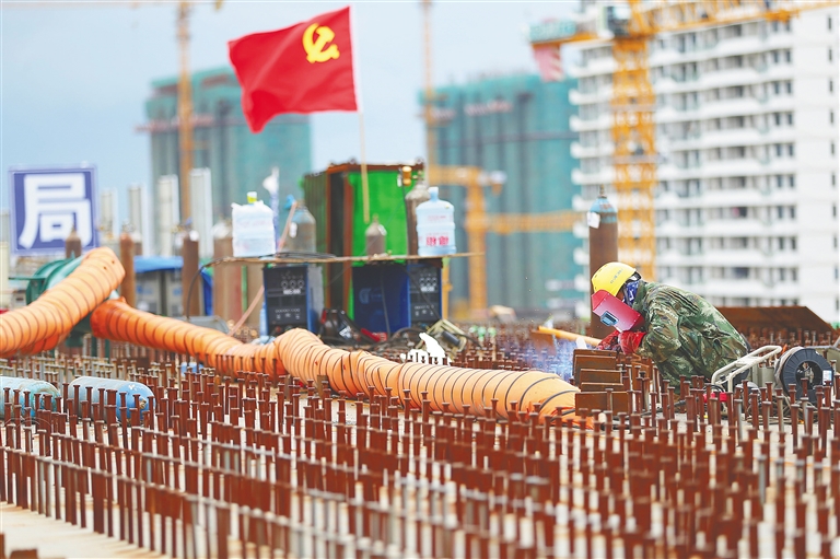 去年以来,海口城建集团党委联合施工、监理、设计和勘察单位成立海秀快速路(二期)项目临时党支部,将代建、施工等项目参建各方拧成一股绳,充分发挥参建各方党员的先锋模范作用和临时党支部的战斗堡垒作用。