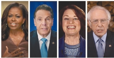 根据日程,前副总统拜登将于20日晚即大会闭幕夜在其居住地特拉华州发表远程演讲,正式接受民主党总统候选人提名。前民主党籍总统奥巴马和克林顿、2016年民主党总统候选人希拉里、民主党内“进步派”领袖桑德斯和沃伦、一批民主党政治新秀以及多名较有影响力的共和党人将在大会期间发表讲话支持拜登。