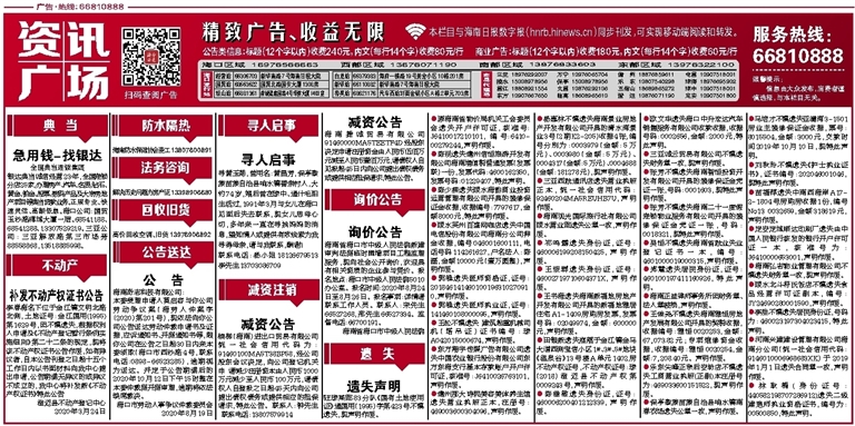 ●王俊尧不慎遗失海南雅恒房地产发展有限公司开具的契税收据,收据编号:雅恒0020253,金额:67,073.82元;专项维修资金收据,收据编号:雅恒0020254,金额:7,208.40元。声明作废。