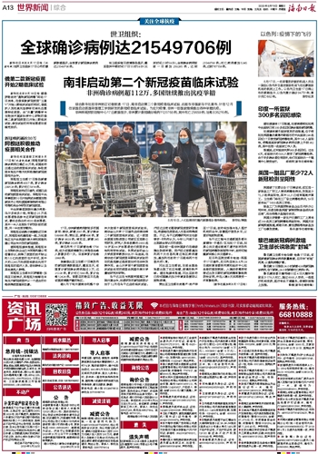 | 海南日报 世界新闻综合 013 2020-08-191 2020年08月19日 星期三 |