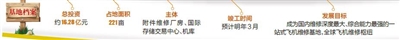 据了解,该基地今后将以飞机MRO(维修、维护、运营的简称)为核心业务,主要承接各类机型的定检大修业务、航空改装喷涂业务、附件修理业务、航材交易业务、技术服务业务、以及航空维修研发项目等,能吸纳2000余高端人才就业。