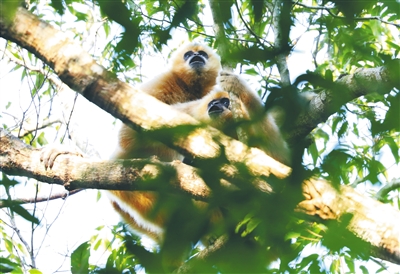 翻看海南长臂猿的“生活说明书”,不难发现其“夜晚喜欢在保温效果好的高大乔木的树冠中睡觉”“喜食多汁成熟浆果,辅以少量鲜嫩枝叶花蕊”等习性特性,这都与热带雨林有关。